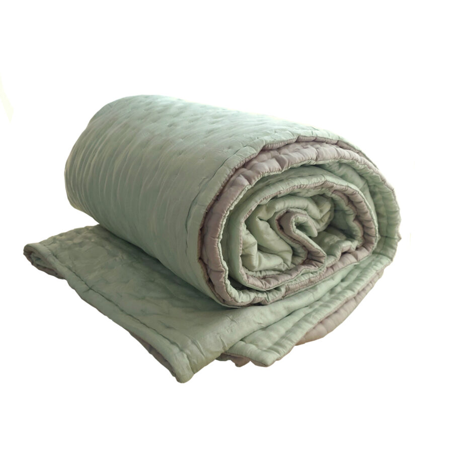 Moko silkkipeitto veden vihreä 240×260 cm – Käsityönä valmistettu silkkipeitto, joka on ylellistä 100% silkkiä.
